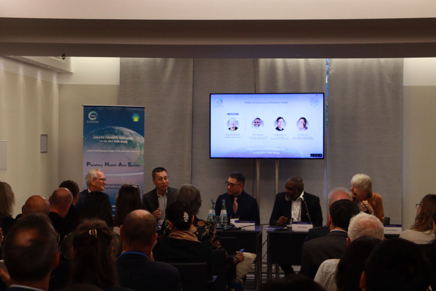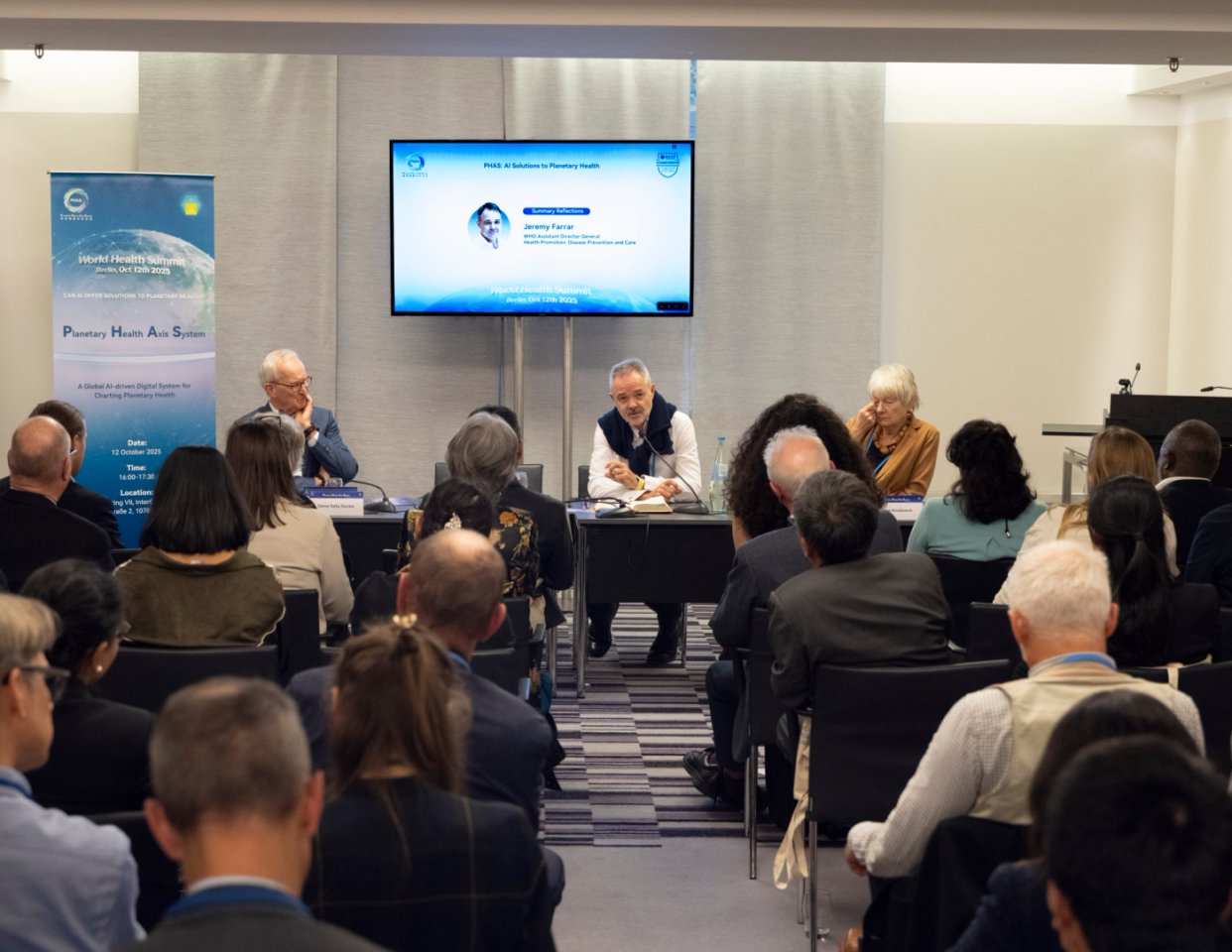 柏林时间2025年10月12日, “世界健康峰会2025” (World Health Summit 2025)期间,北京大学全球健康发展研究院(北大全健院)主办“Can AI Offer Solutions to Planetary Health?”专题报告会,成功发布“星球健康坐标系统”(Planetary Health Axis System: PHAS)。会议汇聚了来自世界卫生组织(WHO)、哈佛大学、英国剑桥大学、伦敦卫生与热带医学院、德国波茨坦气候影响研究所、非洲疾控中心、洛克菲勒基金会、谷歌健康部门、以色列克拉利特医疗集团、加纳科学与技术大学等全球众多知名机构的专家学者,共同探索人工智能(AI)如何助力应对人类文明与星球健康所面临的可持续发展问题及其重大挑战。